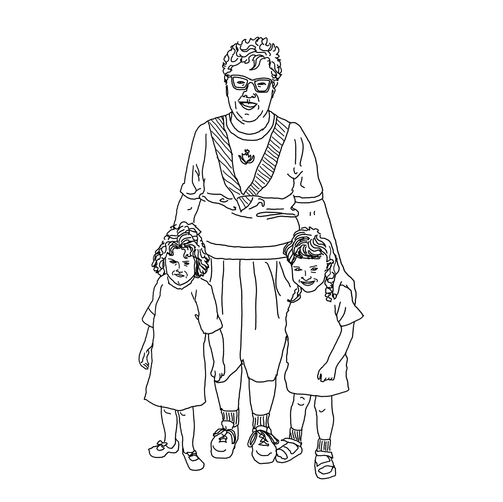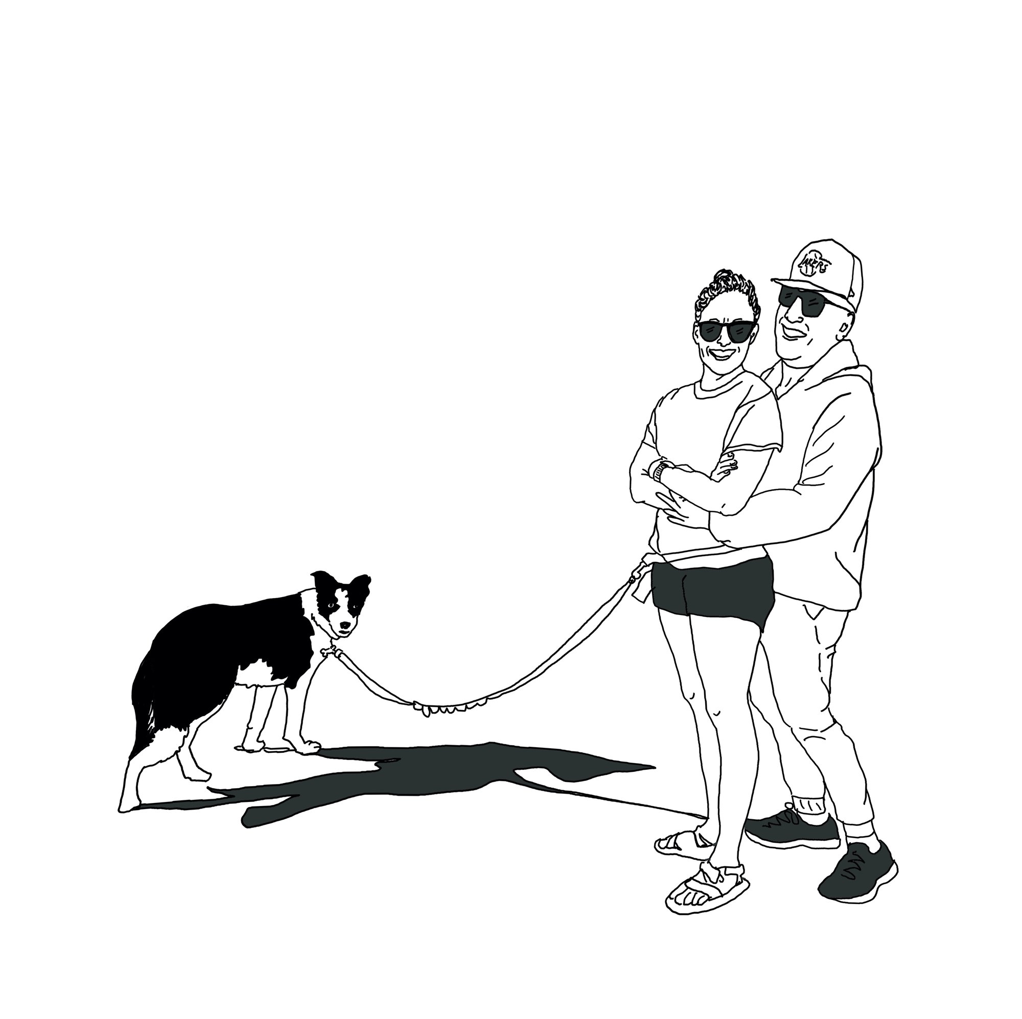 This is a more traditional portrait where I work directly from photos, adding my special touch and style. Submit your favorite photos and I’ll draw & compose them into a portrait! Please remember when ordering that pets count as a subject.